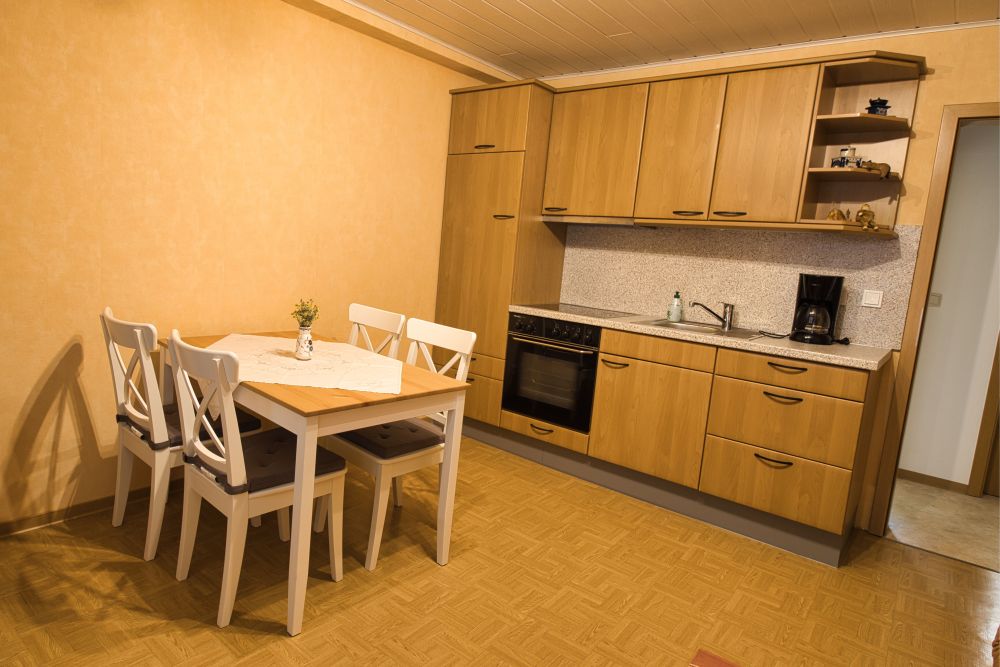 Der Essbereich beinhaltet einen Esstisch mit 4 Stühlen, eine komplett eingerichtete Küchenzeile inklusive großem Kühlschrank mit Gefrierfach, E-Herd mit Backofen, Kaffeemaschine, Eierkocher, Toaster und Wasserkocher.